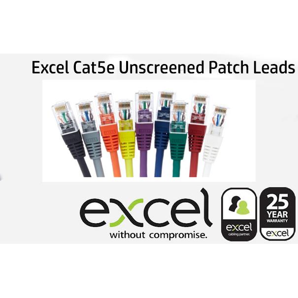 Excel Category 5e Unscreened Patch Leads are manufactured, tested and independently verified to the ISO11801 and EN 50173 Category 5 and EIA/TIA standards for enhanced performance.